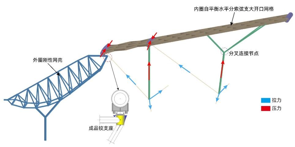 圖4 自平衡水平分索弦支大開口網格結構體系