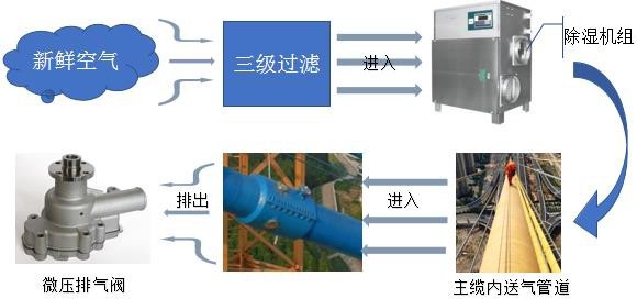 圖3 主纜內(nèi)通干空氣除濕系統(tǒng)的送風(fēng)流程圖