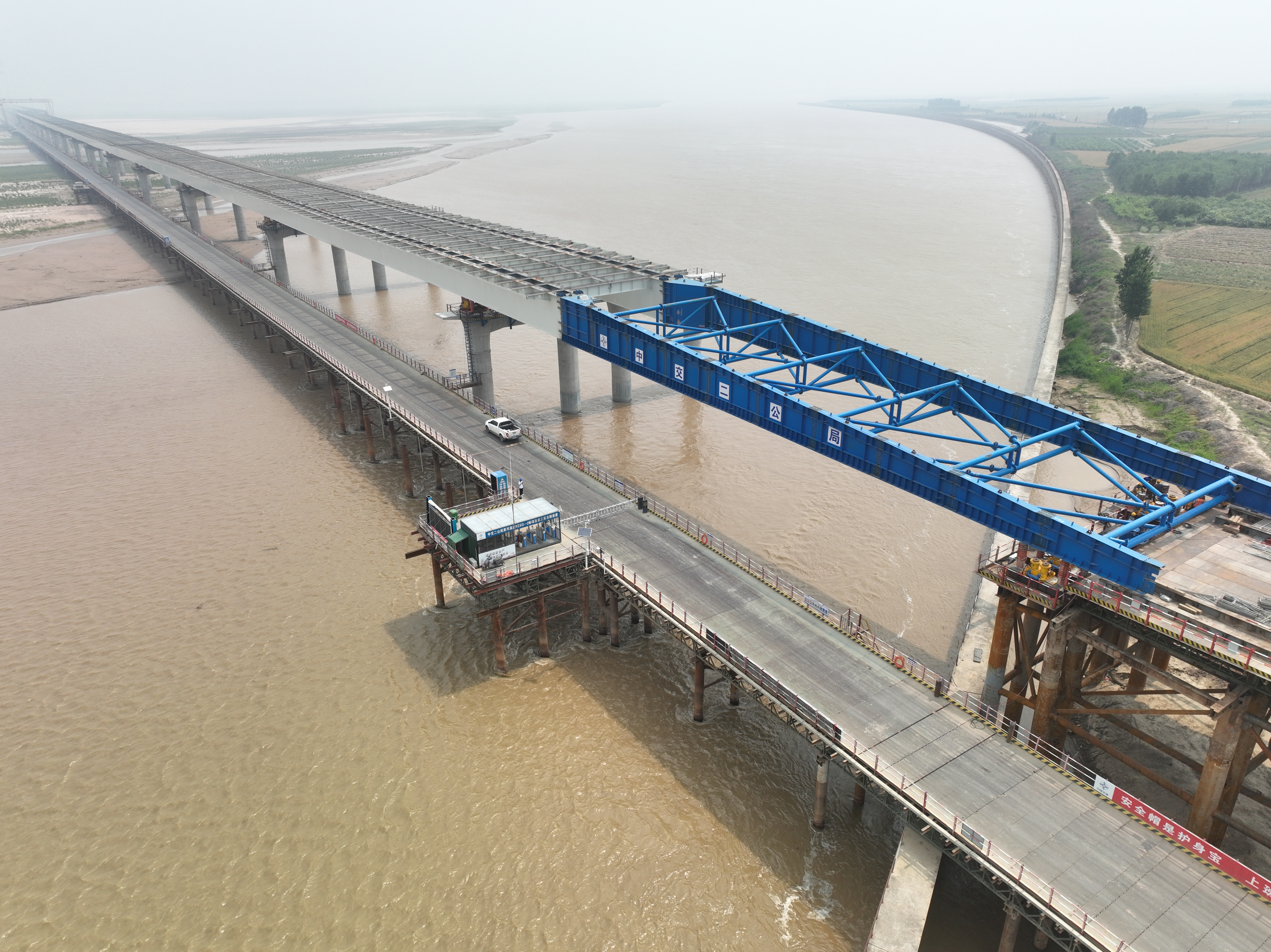 黃河中下游河床寬淺、“有水不能行舟、無水不能通車”、地基承載力低、環保標準高,亟待攻克輕量化組合橋梁結構、工業化建造和智能化監控技術等科技難題,向安全強韌、智能建造、輕量低碳方向發展。項目經八家單位聯合攻關,通過結構-建造-監控融合創新,發明了輕量化鋼混組合橋梁結構、建立了集約高效的工業化建造技術、研發了系列智能化監控裝備,形成創新成果如下: