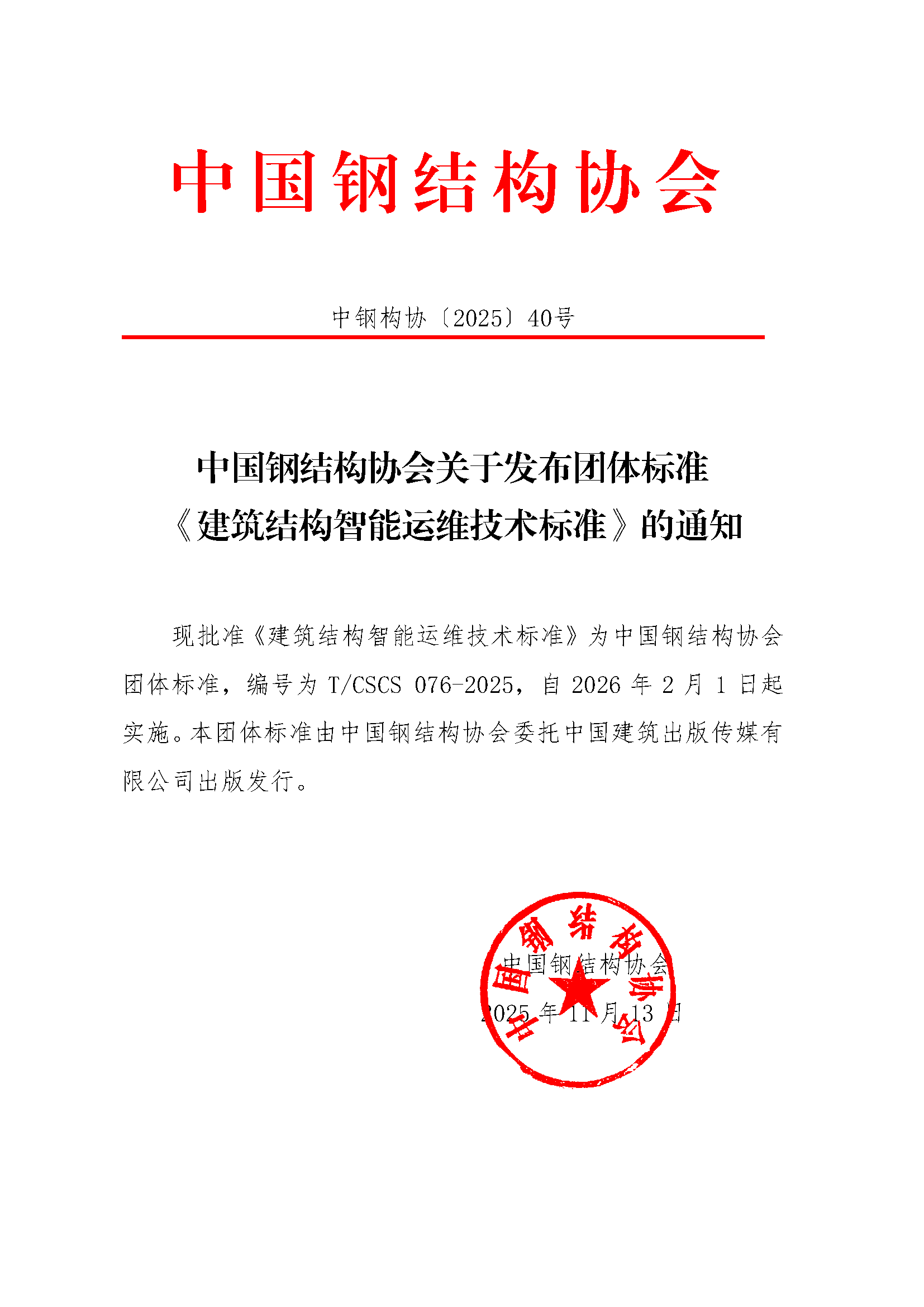中國鋼結構協會關于發布團體標準《建筑結構智能運維技術標準》的通知