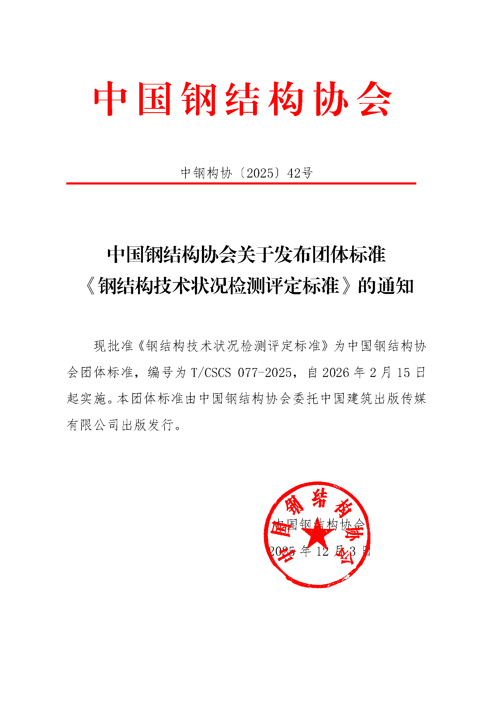 中國鋼結構協會關于發布團體標準《鋼結構技術狀況檢測評定標準》的通知