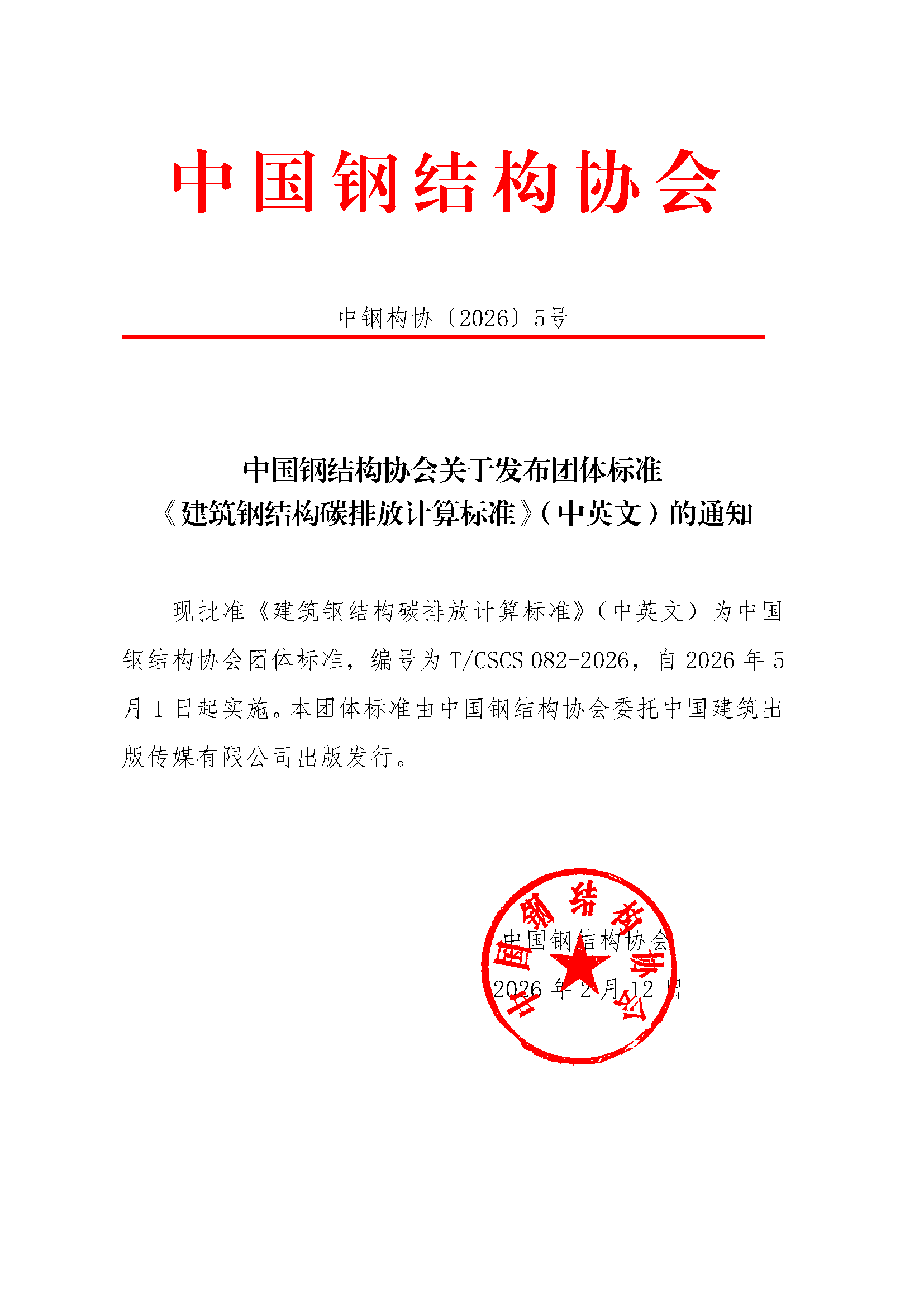 中國鋼結(jié)構(gòu)協(xié)會(huì)關(guān)于發(fā)布團(tuán)體標(biāo)準(zhǔn)《建筑鋼結(jié)構(gòu)碳排放計(jì)算標(biāo)準(zhǔn)》(中英文)的通知