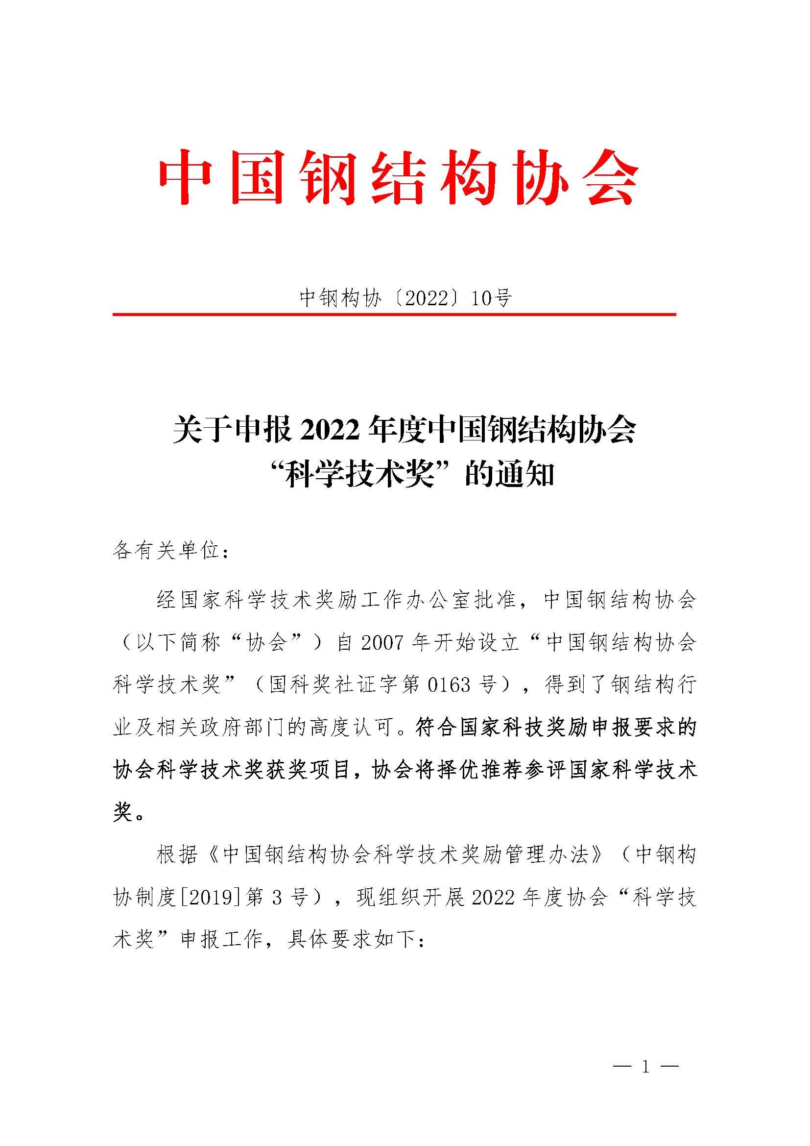 關(guān)于申報2022年度中國鋼結(jié)構(gòu)協(xié)會“科學(xué)技術(shù)獎”的通知